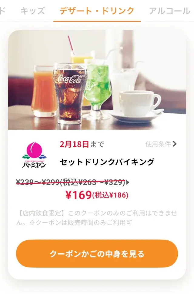スマホに入れたアプリでバーミヤンを選んで、クーポン番号を確認