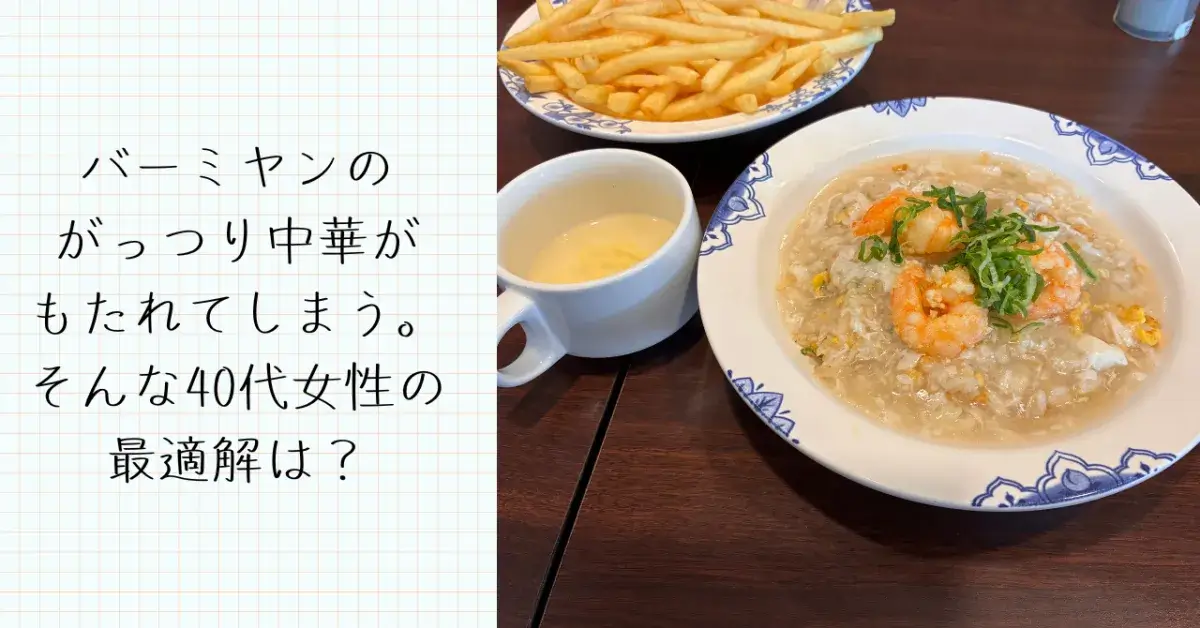 40代女性、炭水化物オンリーだともたれてしまう年齢に突入しているんだと思います。