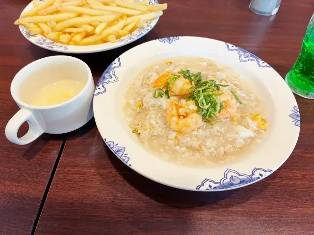 海老は3匹入ってて揚げてあり、あんかけは塩味で卵白が入ってて旨みたっぷりな感じ。