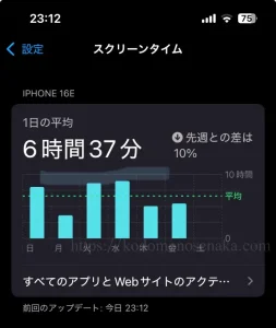iPhone には、スクリーンタイム機能があり、週に一回、「今週、これだけスマホ見てるよ!」とお知らせしてくれます。