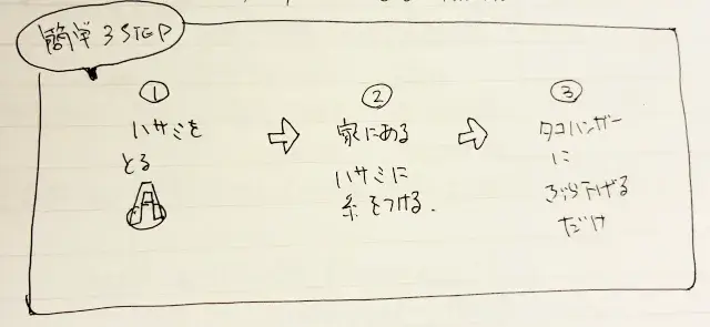 IKEAのタコハンガーは、ピンチが壊れやすいという致命的な弱点がありますが、あっさりピンチを除去できるので、直しながら、使うことができます!