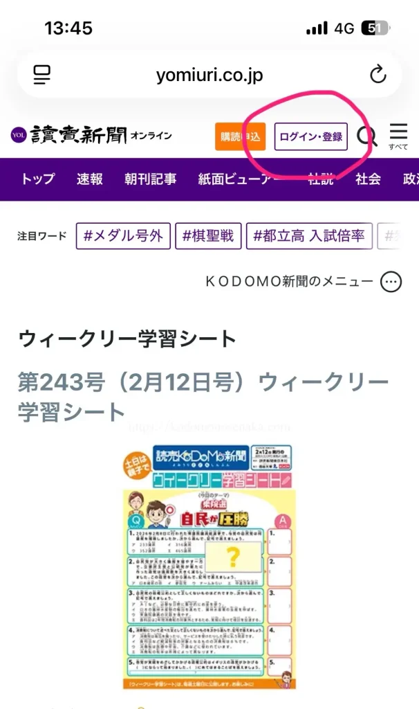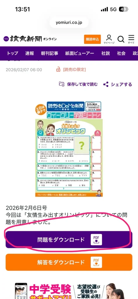 子どもに特化したですが、新聞内容を問題にしたプリントが、公式サイトからダウンロードできるんです。