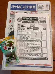 「子ども新聞を読むのはいいけど、問題をやるの面倒…。」と言われるので、景品制にしました。