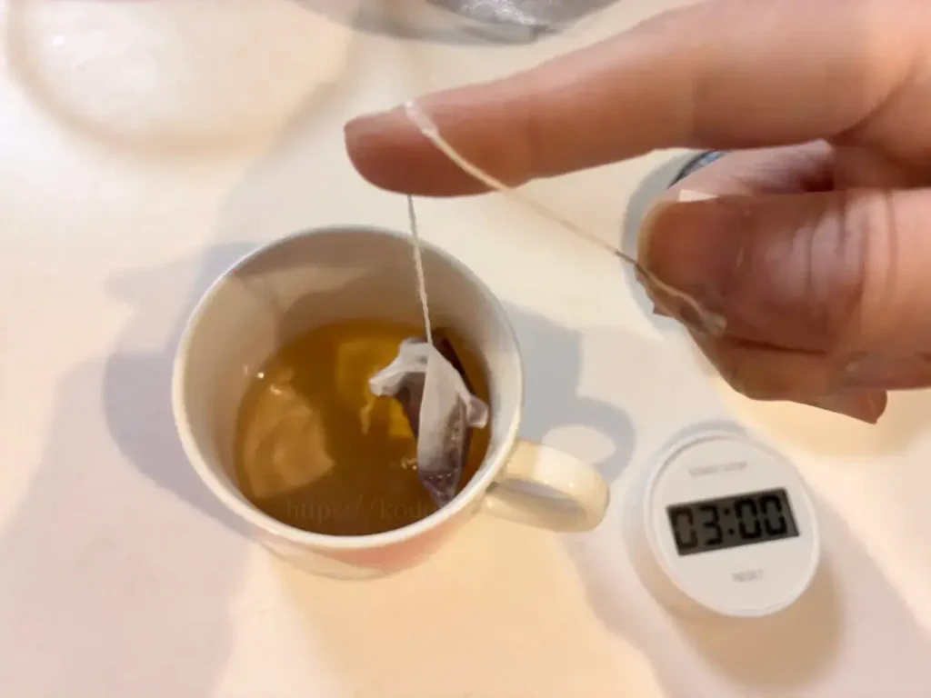 3分たったら、ティーバックを数回振って取り出します。