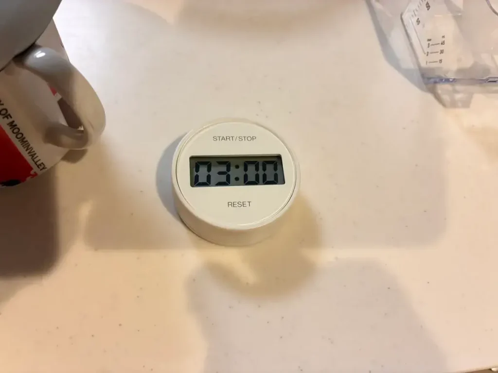 無印のタイマーは、シンプルで丸い形が可愛い。クルクル回してデジタルで合わせるので押し間違いがないのもいい。