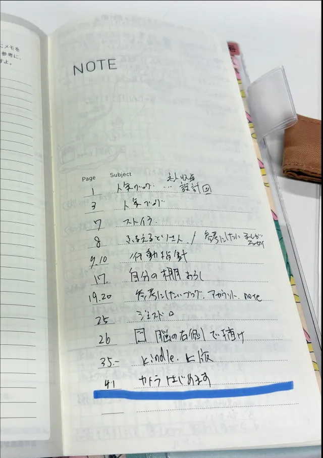 Weeksのメモには目次用のページがあるので、ここにページとタイトルを書きます。