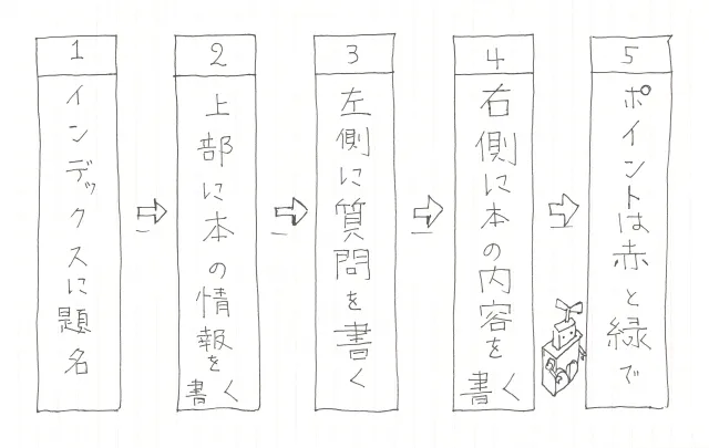 左側に区切り線の列に、読んだ本の内容を質問形式で書きます。